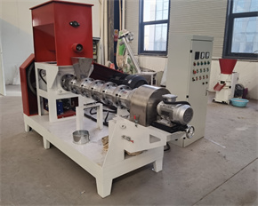 Dog and cat food machine uses foodstuff, meat powder, fishmeal, and beans etc. as raw materials to produce pet food and fish and bird feed with new shape, unique taste, rich nutrition and exquisite structure. The products are cooked and sterilized with high degree and high pressure of the extruder, so it is easy to be absorbed and popular to the pet market.